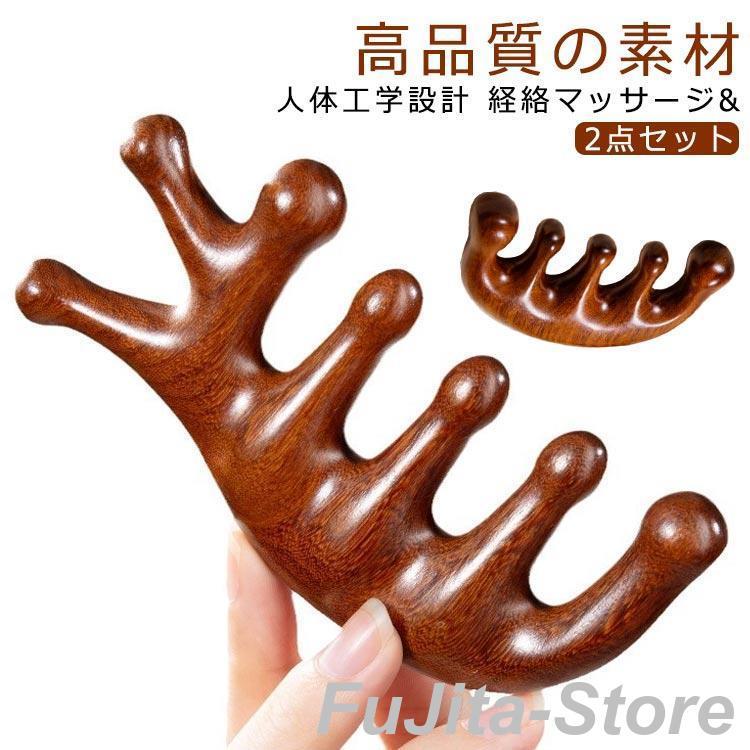 木製 ヘアケア 2点セット サンダルウッド 頭皮マッサージ 檀木櫛 首 リンパマッサージ 2点セット 天然木 頭皮ツボ押し マッサージコーム 経絡マッ
