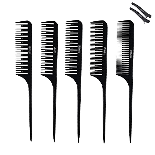 【サロンモード セットコーム】この織りコームは、髪の毛を分離するのに役立ちます。ほとんどの髪のタイプにスタイリングとユニークなスタイルを作成するように設計されています。完璧な分割線を作成するために使用されます。間隔のデザインを徐々に減らして、髪の毛が均等に引っ張られるようにします。 【素材】ラットテールヘアハイライトコーム は丈夫なカーボンファイバー素材を使用し、帯電防止・耐熱性、高弾性、150*までの耐熱性を備えています。ヘアコームヘアアイロン、ヘアドライヤー、その他のパーマツールに最適です。スタイリング用のストレートヘアアイロンとヘアドライヤー。 【使いやすさ】細歯くし レディース 人気ニードルテールは持ちやすく使いやすいです。これらの細かい櫛には2層の歯があり、ハイライトコーム髪を