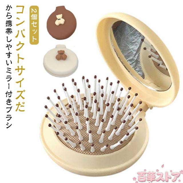 折りたたみヘアブラシ マッサージ ヘアケア ミラー付き 櫛 2個セット コンパクト 鏡付き くし 折りたたみヘアブラシ 旅行 外出 通勤 通学 入院用 出張 子供も使える 折りたたみ 便利 かわいい スタイリング 持ち運び 携帯 シンプル 可愛い