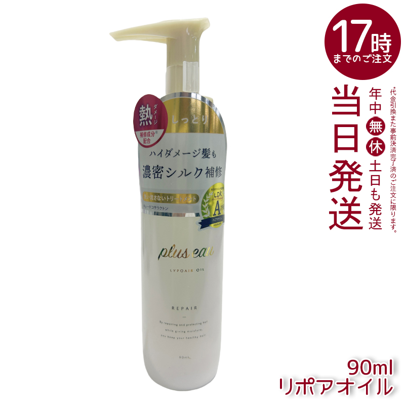 plus eau プリュスオー リポアオイル 90ml pluseau プリュスオー オイル ヘアケア スタイリング アウトバストリートメント 洗い流さないトリートメント 補修成分 ドライヤー ヘアアイロン 熱ダメージ インバス アウトバス 国内正規品 送料無料