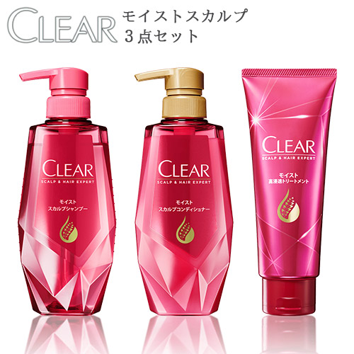 ■クリア(CLEAR) モイスト スカルプシャンプー 370g&コンディショナー 370g&高浸透トリートメント 180g ヘアケア3点セット ユニリーバ(Un