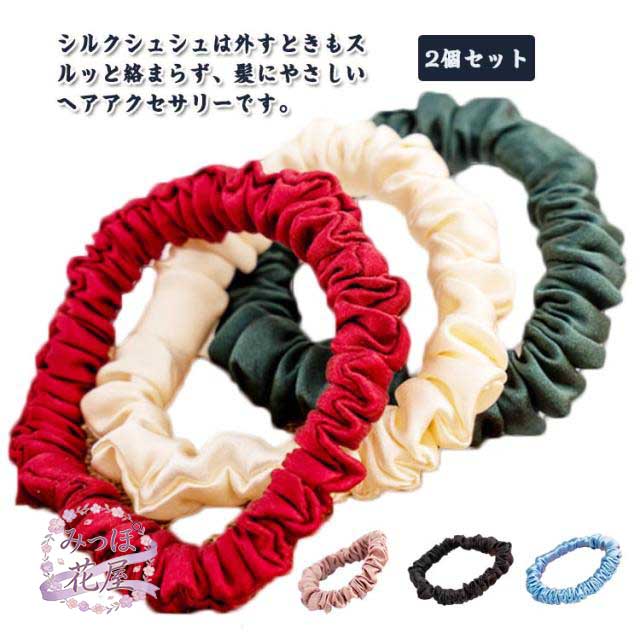 ■ヘアゴム シルク ヘアゴム シルク 髪にやさしい 19匁 1cm 2個セット 抜け毛予防 シュシュ 絡まない 細め 大人 ヘアケア 小さめ 絹 髪留め