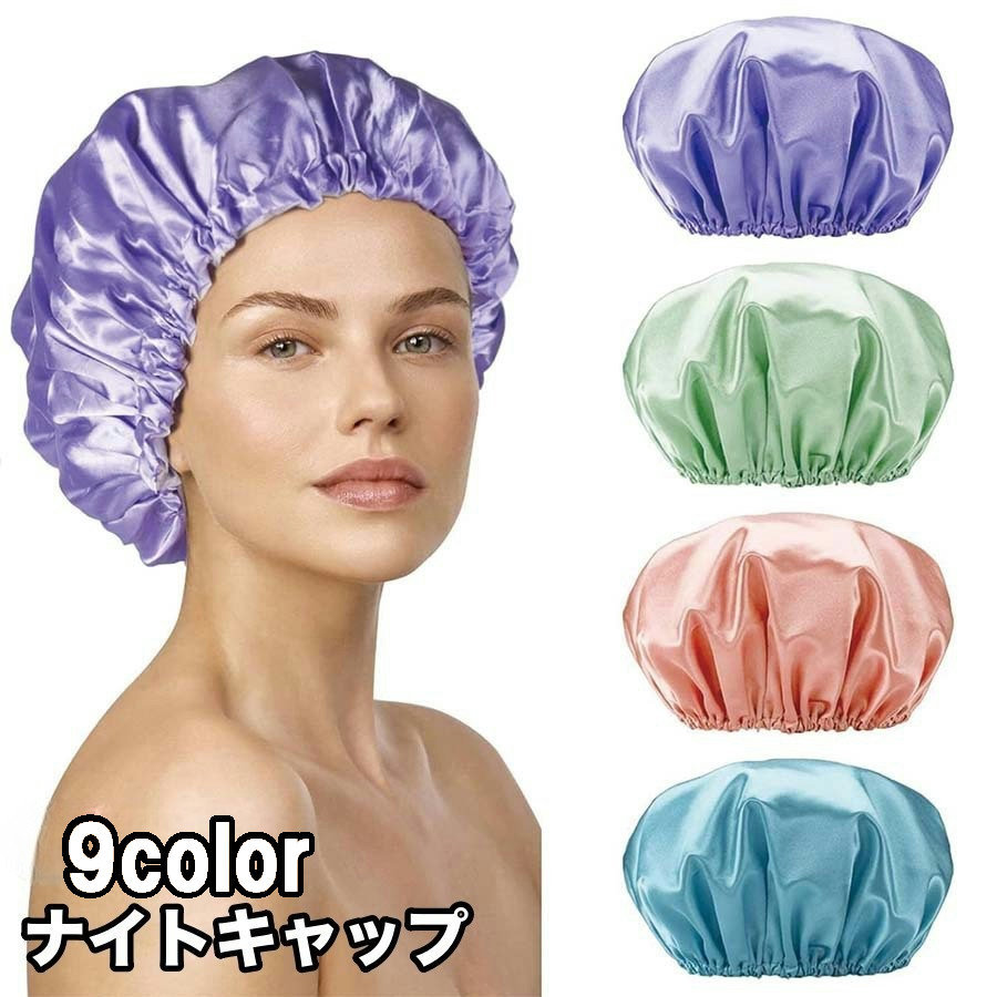 ■ナイトキャップ サテン調 レディース ヘアキャップ キャップ 帽子 夜 夜間 就寝用 ロングヘア 保湿 美髪 ヘアケア ダメージ