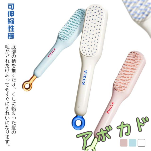 ■推すだけ、1秒髪が絡まない!ヘアブラシ 可伸縮性櫛 くし ヘアケア 静電気防止 握りやすい 頭皮ケア カーリーヘア 太い髪 ストレートヘア