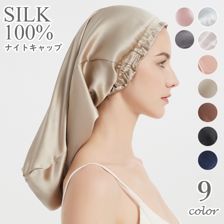 ■ナイトキャップ シルク 100% レディース ヘアキャップ 帽子 筒型デザイン 就寝用 ロングヘア用 保湿 髪保護 ヘアケア ギ