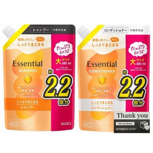 ■エッセンシャル しっとりまとまる つめかえ用 シャンプー コンディショナー セット680ML+680ML オリジナルTHANK YOUカード