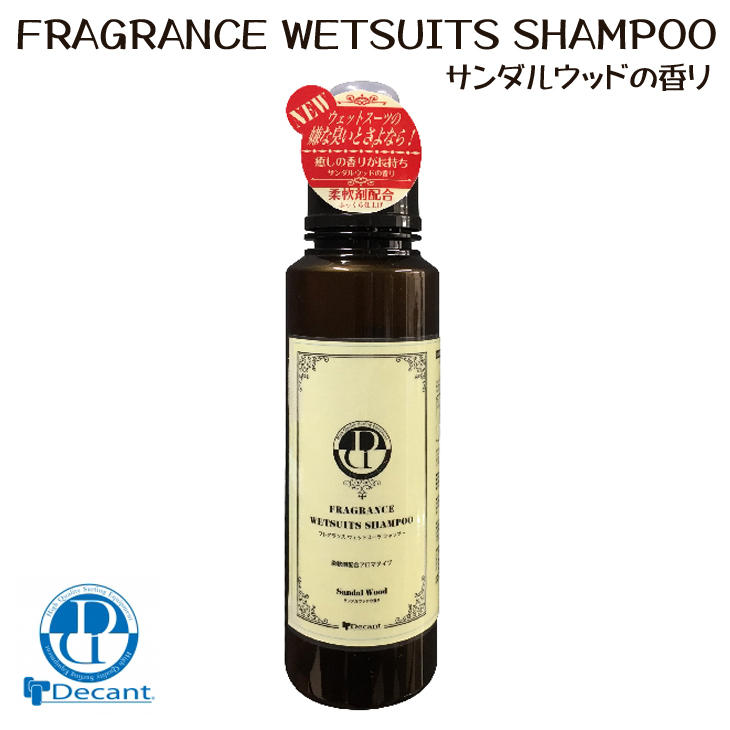 DECANT デキャント FRAGRANCE WETSUITS SHAMPOO フレグランスシャンプー 柔軟剤配合 アロマ ウエットシャンプー ウエットスーツ サーフィン 日本正規品 【DECANT】デキャント FRAGRANCE WETSUITS SHAMPOO フレグランスウエットスーツシャンプー ■ 商品詳細 ■ プレミアムシリーズ 〜 高品質を追求し、高級感を演出 ウェットスーツを洗っている時からサンダルウッドの心地よい香りを感じ、洗い流した後も乾いた後もしっかりと 香りが続きます。仕上がりもスーツの内側の起毛部分やジャージ部分がふんわりと仕上がり、着心地がよくなります。 ・しっかりと香り 香り長持ち 癒しのサンダルウッドの香り ・ふっくら柔らか仕上げ 柔軟剤配合 ・泡立ちが良く しっかりとした洗浄力 ■内容量:500ml