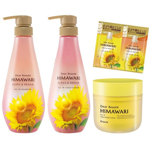■ディアボーテ 【グロス & リペア】 オイルイン シャンプー コンディショナー ヘアマスク 3点 セット おまけ付き ヒマワリ ノンシリコン