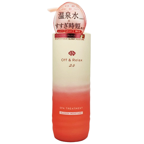 【ブランド】Off & Relax【商品カテゴリ】ヘアケア トリートメント 【分類】国内正規品【原産国】日本など【商品区分】化粧品・フレグランス【商品説明】ダメージを受けた髪を内側から補修し、毛先までしっとりとまとまる"グロッシーヘア"へ。高保湿成分と植物由来オイルを贅沢に配合し、乾燥して広がりやすい髪をしっかり包み込んでケアします。うるおいとツヤを同時に叶える、モイスチャーケアの決定版。 オフ アンド リラックス オフアンドリラックス オフ&リラックス O & R スパシャンプー スパトリートメント 温泉 温泉水