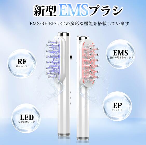 ■電気ブラシ 美顔器 電動頭皮ブラシ 頭皮ケア ems 美顔器 頭皮ケア ブラシ ヘッドブラシ 3色LED スカルプケア ヘアケア 3段階強度 軽量 コ