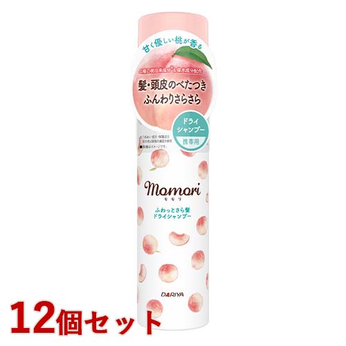 持ち運びに便利な携帯用サイズ!洗い立てのような清潔感のある仕上がりうるおい成分配合:蟠桃エキス(モモ果実エキス)、桃ウォーター(桃果実水)、桃葉エキス保護成分配合:桃オイル(モモ核油)、保水成分(シロキクラゲエキス)配合白くなりにくいふわさら髪パウダー配合のオールシーズン使えるほんのりメントール感です。甘く優しい桃が香るフルーティフルールの香りでニオイを抑えます。モモリ(momori)/ダリヤ(DARIYA)[名称] ドライシャンプー[内容量]45g 12個セット
