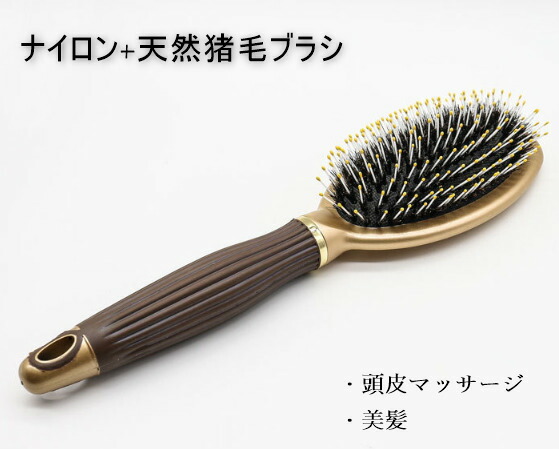 ブラシ ヘアブラシ マッサージブラシ 櫛 くし コーム ヘアスタイリング イノシシ毛 ナイロン 天然