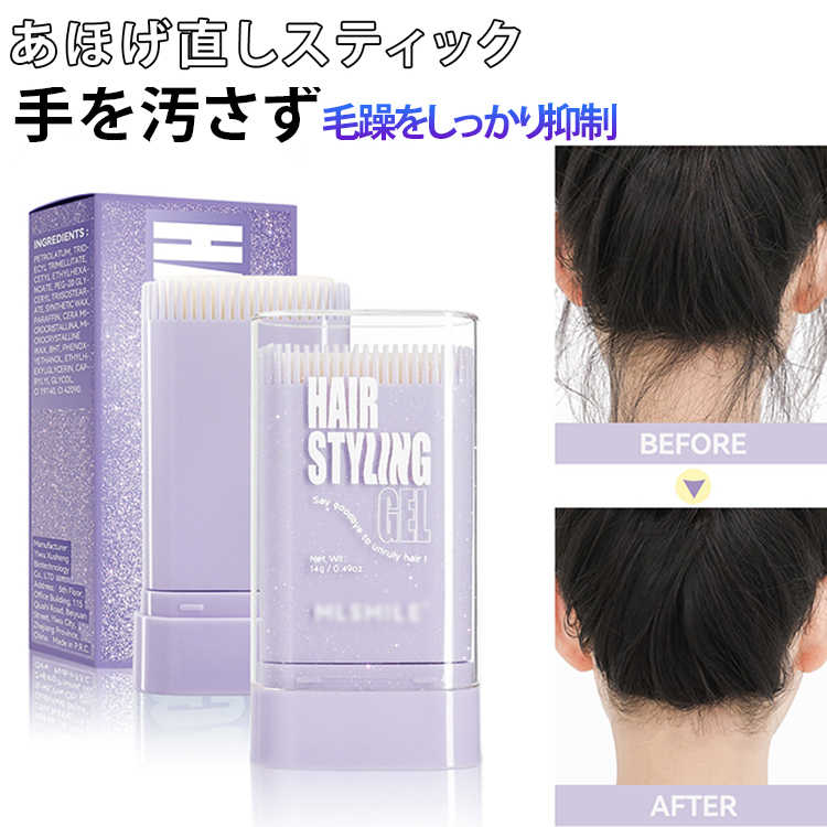 ■ブラシ付き ヘアスタイリングブラシ 後毛 あほげ直しスティック 前髪 アホ毛直し まとめ髪 ヘアワックス おくれ毛 スタイリング剤 あほ毛