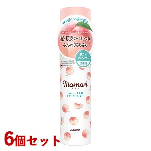 持ち運びに便利な携帯用サイズ!洗い立てのような清潔感のある仕上がりうるおい成分配合:蟠桃エキス(モモ果実エキス)、桃ウォーター(桃果実水)、桃葉エキス保護成分配合:桃オイル(モモ核油)、保水成分(シロキクラゲエキス)配合白くなりにくいふわさら髪パウダー配合のオールシーズン使えるほんのりメントール感です。甘く優しい桃が香るフルーティフルールの香りでニオイを抑えます。モモリ(momori)/ダリヤ(DARIYA)[名称] ドライシャンプー[内容量]45g 6個セット