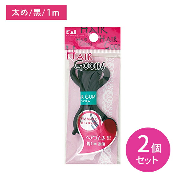 ■【2個セット】HA3018 H/G ヘアゴム 太 黒 約1m ヘアアクセサリー ヘアスタイリング 伸縮性 カットタイプ 長さ自由 太め 抗菌 ブラック 目