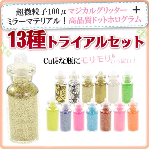 ■高品質マジカルグリッターと丸型ホログラム【13種トライアルセット】Cuteな瓶にビッシリいっぱい♪ジェルネイル ネイル