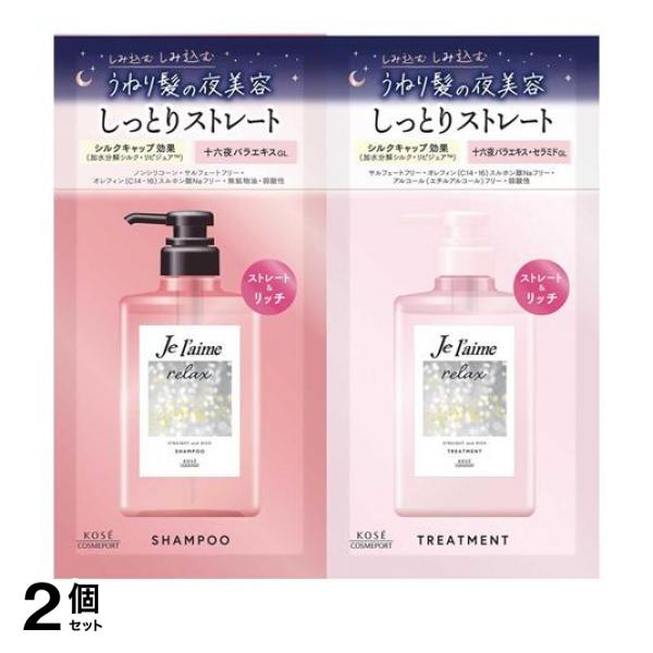 【メール便送料込】※2セット以上ご注文の場合は複数便扱いにさせて頂きます。※他商品同梱不可しみ込む夜美容で、うねりが気になる髪も扱いやすいストレート髪にみちびくシャンプー & ヘアトリートメントシルクキャップ効果で、つやつやまとまる髪に。アロマティックジャスミンの香り。SG(ストレート&グロス) シャンプー■アミノ酸系・ベタイン系洗浄成分配合■ノンシリコン、サルフェートフリー、オレフィン(C14-16)スルホン酸Naフリー、無鉱物油、弱酸性SG(ストレート&グロス) トリートメント■カラーケア・ヒートプロテクト■サルフェートフリー、オレフィン(C14-16)スルホン酸Naフリー、アルコール(エチルアルコール)フリー、無鉱物油、弱酸性ジュレーム(Je laime)/コーセーコスメポート株式会社[名称] シャンプー & ヘアトリートメント[内容量] 各10ml×10個セット
