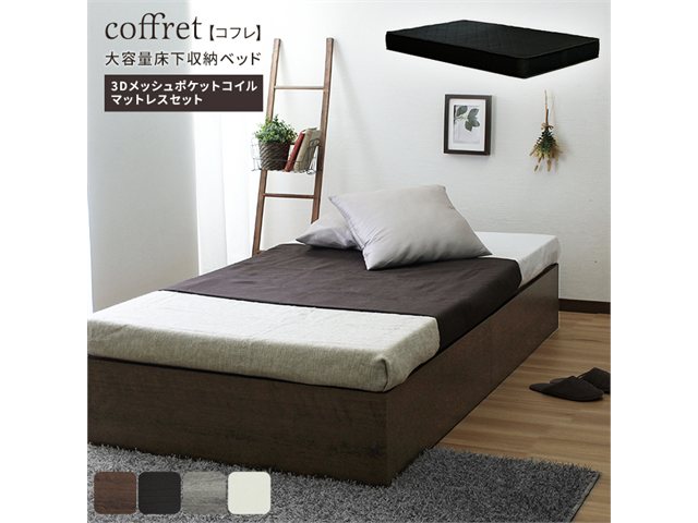 coffret【コフレ】収納付きベッド リバーシブルマットレスセット ホワイト Sセット