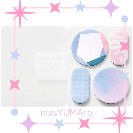 【商品説明】○「コフレ」は、コスメパレットをモチーフにした、貼ってはがせるフィルムシールです。季節や気分に合わせてコスメを楽しむ感覚で、シールでも自分らしく自由な彩りを楽しんでいただけます。○ベースカラーやポイントカラー、ラメなどが1つにまとまっているコスメパレットのような仕上がりを目指し、カラーは無地・ニュアンス柄・箔押しなどの華やかな印刷パターンをセットにし、シール形状は丸やスクエア、半円などを組み合わせました。○手帳アレンジやギフトラッピングなど、さまざまな用途でお楽しみいただけます。【特長】○重ね使いがしやすく、貼ってはがせるバランスよくデコレーションができる色の組み合わせになっているので、1冊のみでもバランス良く華やかに仕上がります。フィルム素材で透け感があるので、重ね貼りもおすすめです。【詳細】・サイズ:約47(H)×92(W)mm・入り数:40枚入り(8シート×5デザイン)・PET素材