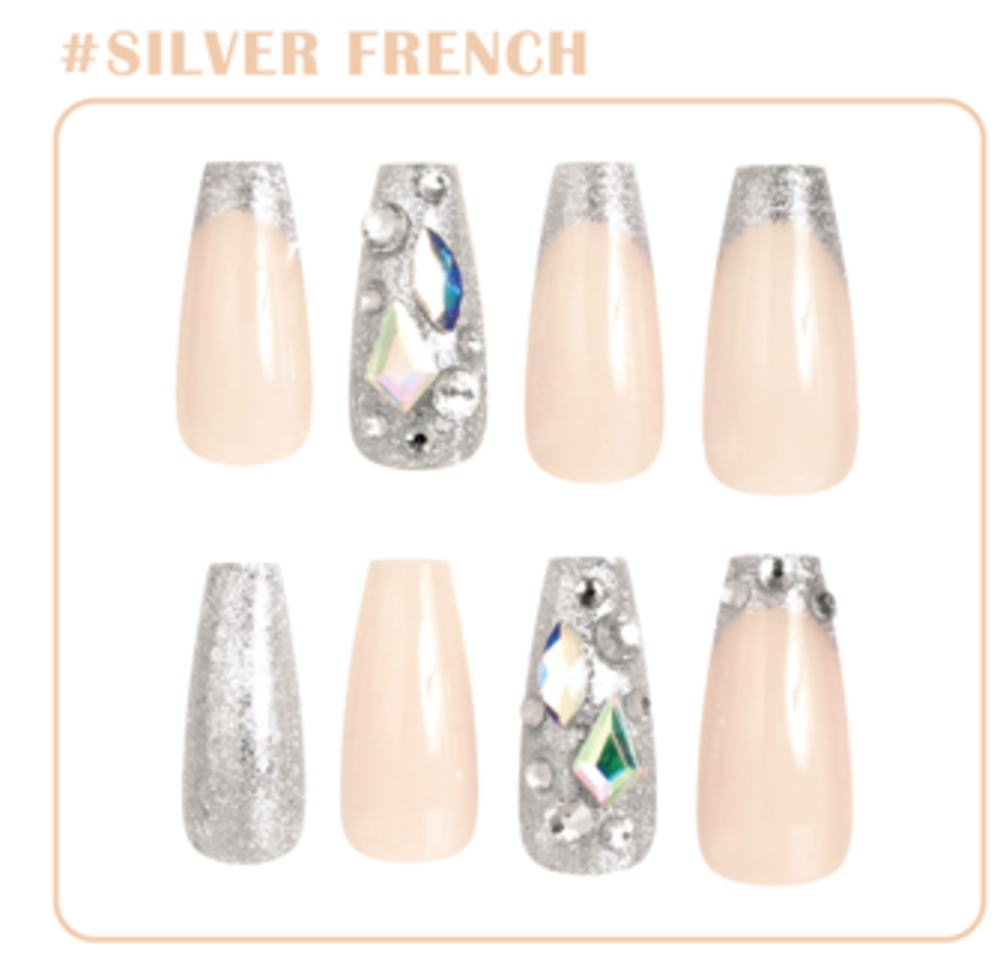 【送料無料】 【4個セット】 【セット】 【セット商品】 オリジナル ネイルチップSILVER FRENCH ロングスクエアタイプ セルフネイル つけ爪 美容 コスメ 雑貨