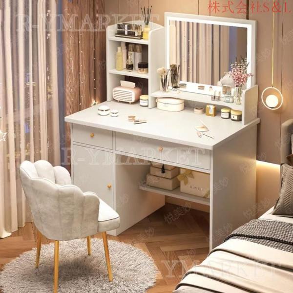 ■2023 最新型 ドレッサー おしゃれ テーブル 安い 鏡台 椅子 スツール セット 収納 LED ライト デスク 化粧台80CM メイク コスメ かわいい
