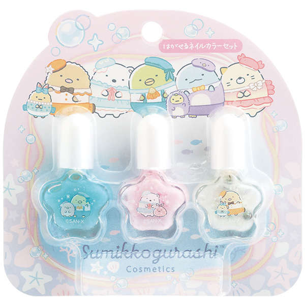 ついついおでかけしたくなる♪はがせるネイルカラーセットができました!ネイルカラー3本の人気セットです☆■サイズ:約120×125mm■素 材:ネイルカラー3個セット■メーカー:サンエックス(San-X)