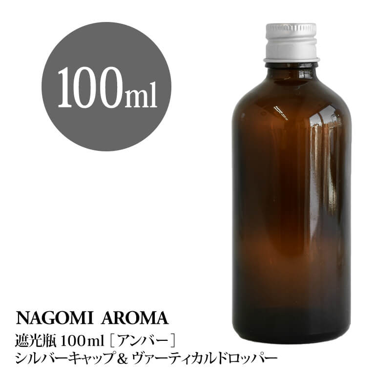 【特徴】遮光瓶(アンバー)にドロッパーとアルミのシルバーキャップがついています。オイルの小分けや、ブレンド用に便利な遮光ビン・スタンダードなタイプのドロッパーとアルミキャップのセットです。ガラス瓶の色は茶色(アンバー)で、遮光性が高く、シックな色合い。様々なシーンにマッチするので使いやすい色です。【商品スペック】産地:中国内容量:100ml原材料:ガラス、プラスチック、アルミ サイズ:瓶:H113mm×W45mm、キャップ:H18mm×W21mm、キャップ装着時:H1118mmその他:[カラー]瓶:アンバー、キャップ:シルバー[セット内容]瓶本体×1、ドロッパー&キャップ×1