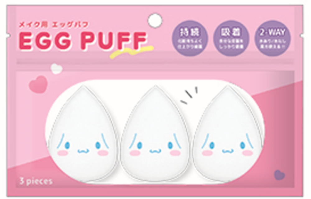 【サンリオキャラクターズ】エッグパフ【シナモロール】【シナモン】【パフ】【スポンジ】【コスメ】【メイク】【化粧】【3個入り】【3個セット】【雑貨】【グッズ】【かわいい】