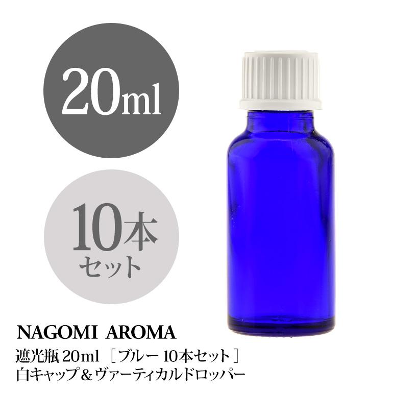 ■遮光瓶 20ml(ブルー) 10本セット白キャップ&ヴァーティカルドロッパー 瓶 遮光 青 容器 ビン 化粧水 コスメ ボトル 保存容器