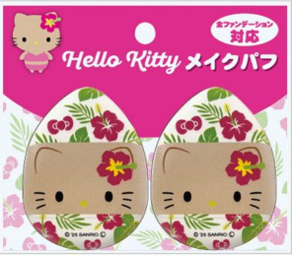 ■アイK-6301C サンリオキャラクターズ メイクパフ2P ハイビスカス ハローキティ ぎゅるりーぬ パフ スポンジ 化粧 コスメ 2個入