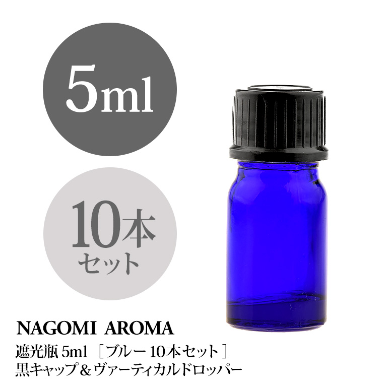 ■遮光瓶 5ml(ブルー) 10本セット黒キャップ&ヴァーティカルドロッパー 瓶 遮光 青 容器 ビン 化粧水 コスメ ボトル 保存容器