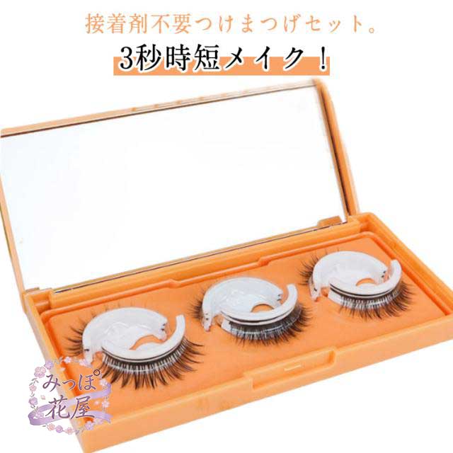 ■つけまつげ のり不要 繰り返し使える 3ペア 専用保管 簡単時短 アイメイク まつ毛 睫毛 美容 コスメ 大きいサイズ レディース つけま 防