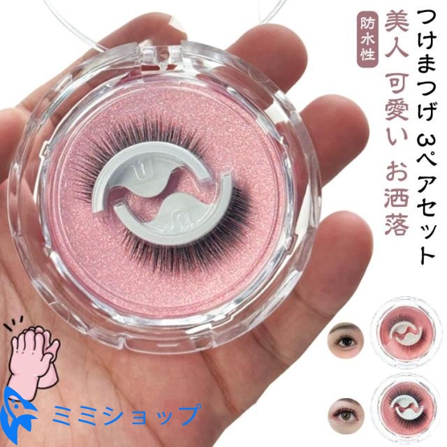 ■3ペアセット つけまつげ 大人 専用保管 睫毛 簡単時短 アイメイク マツエク まつ毛 コスメ 美容 のり不要 ボリューム ウォータープルーフ