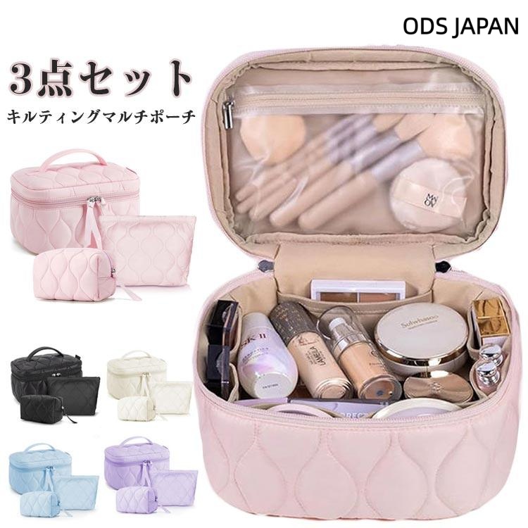 キルティング ナイロン マルチ 収納 防水 バッグインバッグ 3点セット コスメ キルティング メイク 小物入れ ポーチ バッグ 化粧 持ち歩き 無地