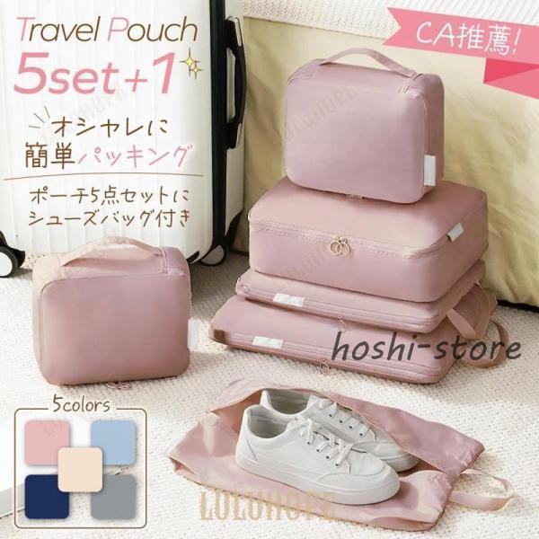 ■トラベルポーチ 6点セット 圧縮 旅行ポーチ 化粧 コスメ 小物 クローバー株式会社 下着 シューズ バッグ くすみ パッキング 便利グッズ