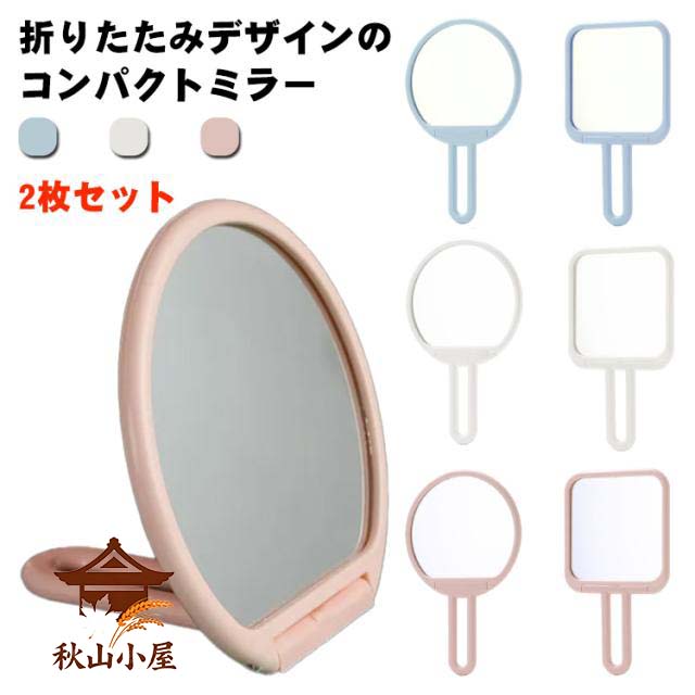 コンパクトミラー ミラー 手鏡 コンパクト ハンドミラー 2枚セット 携帯 円型 サークル シンプル かわいい メイク道具 コスメ ギフト プレゼント 送料無料