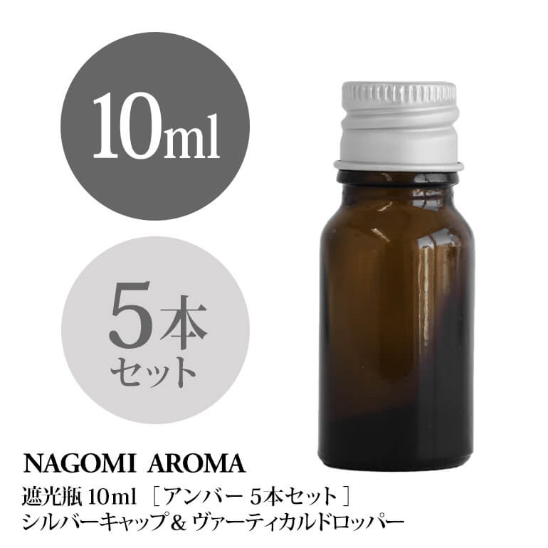 ■遮光瓶 10ml(アンバー) 5本セットアルミキャップ ヴァーティカルドロッパー 瓶 遮光 茶色 容器 ビン 化粧水 コスメ ボトル 保存容器