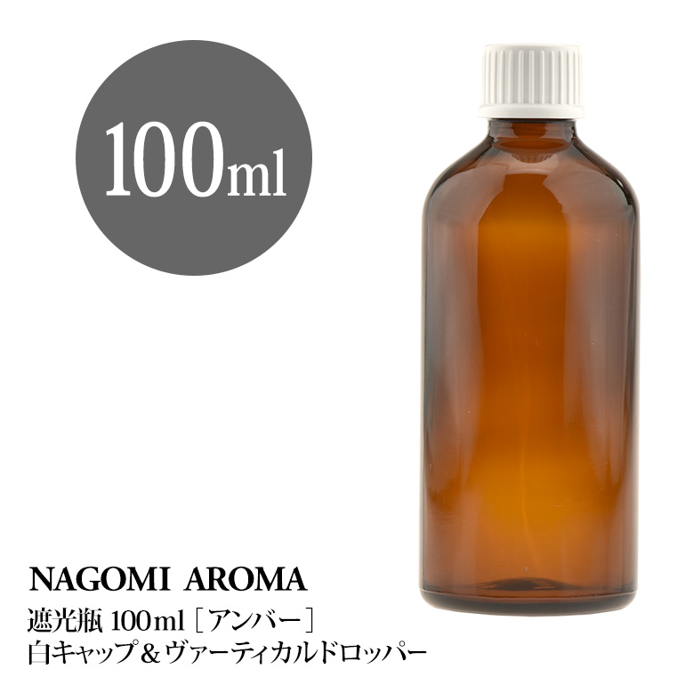 【特徴】遮光瓶(アンバー)にドロッパーと白キャップがついています。オイルの小分けや、ブレンド用に便利な遮光ビン・スタンダードなタイプのドロッパーと白いキャップのセットです。ガラス瓶の色は茶色(アンバー)で、遮光性が高く、シックな色合い。様々なシーンにマッチするので使いやすい色です。【商品スペック】産地:中国内容量:100ml原材料:ガラス、プラスチックサイズ:瓶:H113mm×W45mm、キャップ:H15mm×W22mm、キャップ装着時:H115mmその他:[カラー]瓶:アンバー、キャップ:白[セット内容]瓶本体×1、ドロッパー&キャップ×1