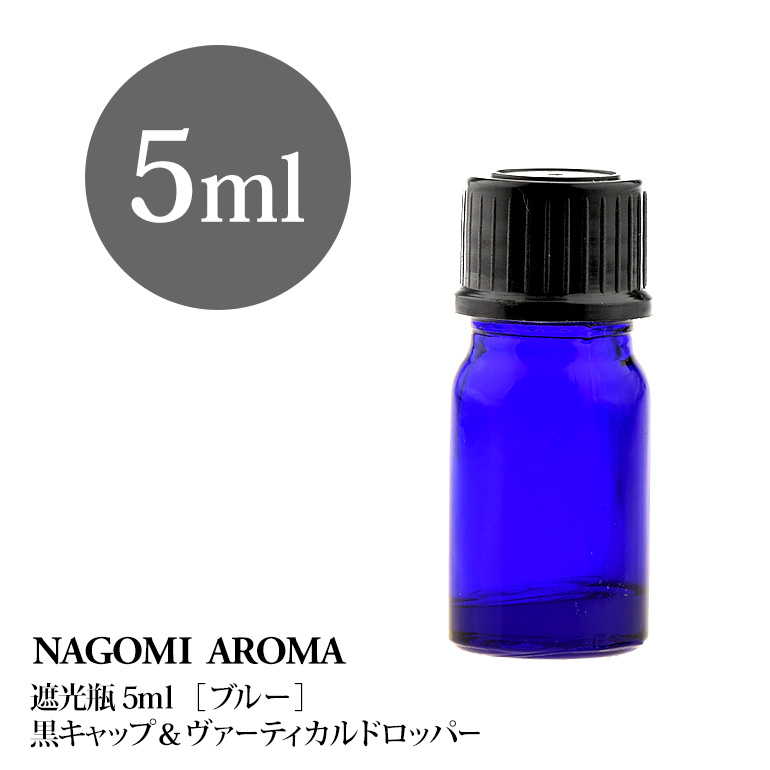 ■遮光瓶 5ml(ブルー) 黒キャップ&ヴァーティカルドロッパー 瓶 遮光 青 容器 ビン 化粧水 コスメ ボトル 保存容器