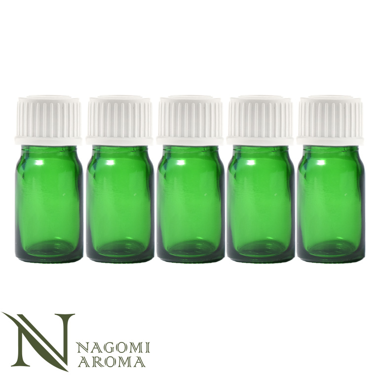 ■遮光瓶5ml(グリーン)5本セット白キャップ&ヴァーティカルドロッパー 瓶 遮光 緑 容器 ビン 化粧水 コスメ ボトル 保存容器