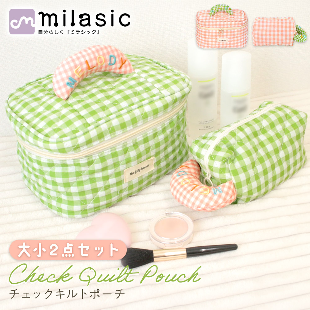 ■【MILASIC公式】チェックヌビポーチ2点セット おむつ 小物入れ 赤ちゃん 幼児 チャイルド 保育園 幼稚園 コスメ 化粧 レディース 大人 キ