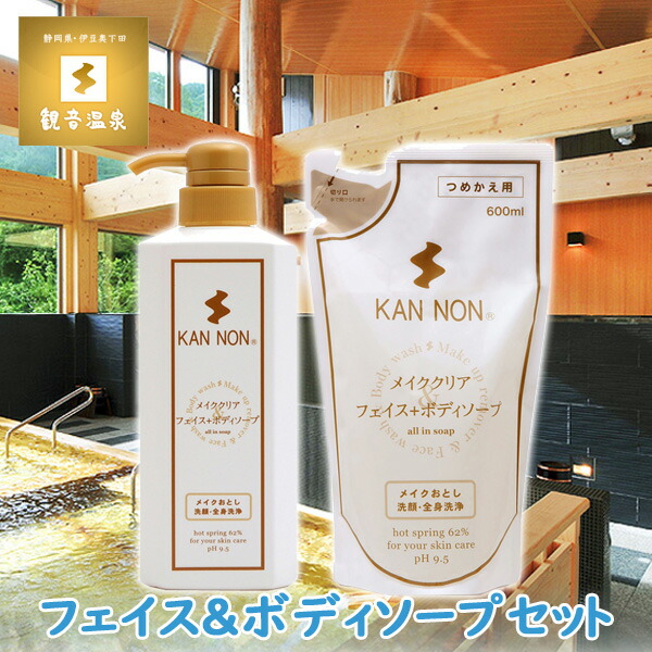 ■観音温泉水 フェイス & ボディーソープ 700ml & 詰替え 600ml セット 観音温泉コスメ 観音温泉化粧品 温泉水配合 化粧落とし 洗顔 詰替え