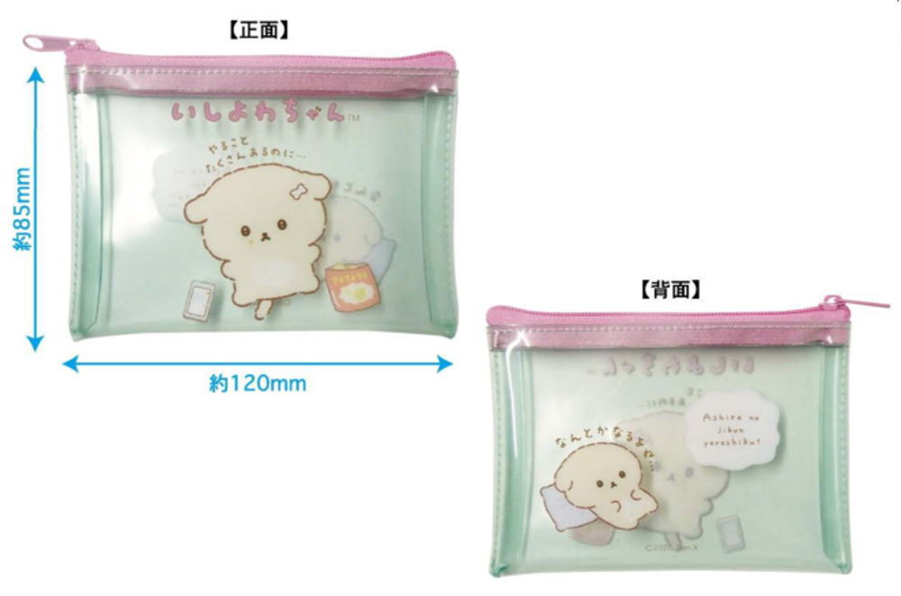 【6個セット】 【セット】 【セット商品】 いしよわちゃん クリアフラットポーチS ミント 動物 アニマル ケース 小物入れ 収納 メイク 化粧 コスメ 雑貨 グッズ かわい