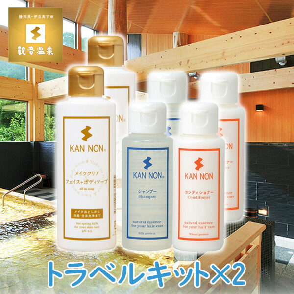 ■観音温泉水 フェイスボディ & ヘアケア トラベルキット×2セット 旅行用品 トラベルグッズ アミノ酸シャンプー コンディショナー ボディ