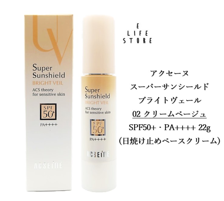 ■アクセーヌ スーパーサンシールド ブライトヴェール 02 クリームベージュ SPF50+ PA++++ 22g 日焼け止めベースクリーム 低刺激性 無香料