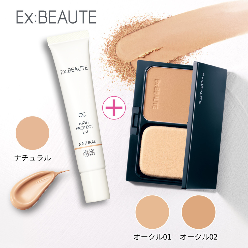 CCハイプロテクトUV ナチュラル・光を操りクリアな素肌感をほしいままに、1本でUVカット & ナチュラルメイク・クリアな素肌感を追求、「ファンデ・メイク下地・BBクリーム」 3つの機能のいいとこ取り。美しい仕上がりを追求します。・「3層光学ミネラルパウダー※1」が、多方向に光を拡散 & 反射。毛穴の影やくすみ※2を飛ばし、肌の色ムラをカバー。美しい透明感を引き出します。・美容成分23種配合でみずみずしい、スキンケア発想のハリ感。メイクしながらスキンケアを叶えます。※1 酸化チタン(顔料)、シリカ(粉体の表面処理剤)※2 くすみとは古い角質を含む汚れや乾燥・キメ乱れによるものビジョンファンデーションシルク・ふわっと軽やかシルクのようななめらかな仕上がりへ・「リンゴ果実水※3」をベースに、厳選の美容成分を配合した、こだわりのパウダーファンデです。とけ込むように肌にフィットし、上品でキメ細やかな肌に仕上げます。・3種の「くずれ防止パウダー」を配合。汗・皮脂を弾く「ラスティングコートパウダー※4」、余分な皮脂を吸着する「皮脂吸着パウダー※5」「皮脂くずれ防止パウダー※6」で、テカリやくずれを長時間ブロックします。・シルクのように「つるん」となめらか、絹から抽出した「微粒子シルクパウダー※7」配合。※3 皮膚コンディショニング成分 ※4 パーフルオロオクチルエトキシシラン(感触改良剤)、タルク(滑沢剤)、塩化Al(収れん剤) ※5 酢酸セルロース(皮脂吸着剤) ※6 酸化亜鉛(紫外線散乱剤)、シリカ(感触改良剤)、ジメチコン(感触改良剤) ※7 シルク(感触改良剤)エクスボーテ素肌のような