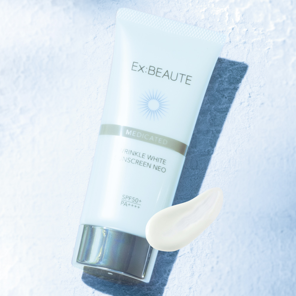 美白※1+シワ改善が叶う、最高峰の日焼け止め美容液●薬用リンクルホワイトサンスクリーンネオ塗るたび美肌印象へ導く、最高峰※2の日焼け止め美容液国内最高基準値※3で紫外線を強力にカットしながら、美白※1とシワ改善効果も備えた日焼け止め美容液。ハリ不足や乾燥が気になる肌にみずみずしく広がり、化粧下地としても使えます。さらに耐水面でも最高評価(UV耐水性★★)を取得しているので、レジャーなどでも大活躍。【美容液成分を惜しみなく配合】乾燥から守る(保湿成分)・コラーゲン・ヒアルロン酸・セラミド※4植物エキス(保湿成分)・アルモンドエキス・オウゴンエキス・ユキノシタエキス6つのフリー(不使用)成分鉱物油、石油系界面活性剤、アルコール、パラベン(防腐剤)、合成着色料、合成香料※1 メラニンの生成を抑え日焼けによるシミ・そばかすを防ぐ ※2 マードゥレクスにおいてSPF値および紫外線カットレベルのこと ※3 日本の表示規定上最高値 ※4 N-ステアロイルジヒドロスフィンゴシン、N-ステアロイルフィトスフィンゴシン