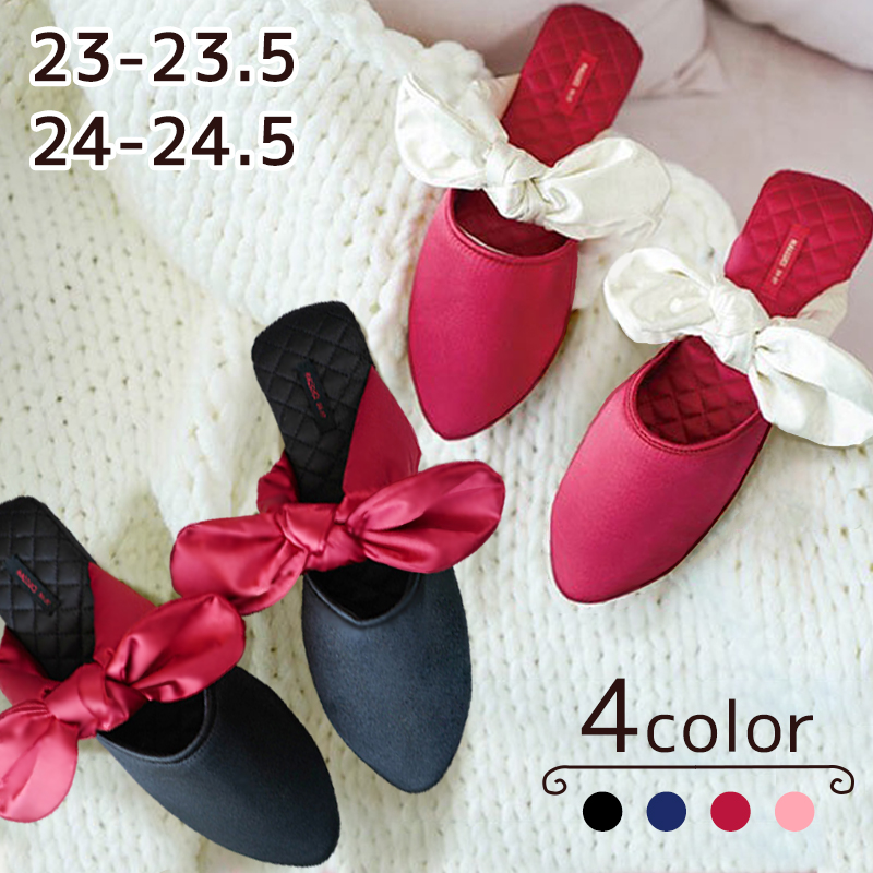 ■スリッパ レディース リボン かわいい ルームシューズ おしゃれ 室内履き エレガンス 通年可 ご自宅用 オフィス フローリング きれい 滑