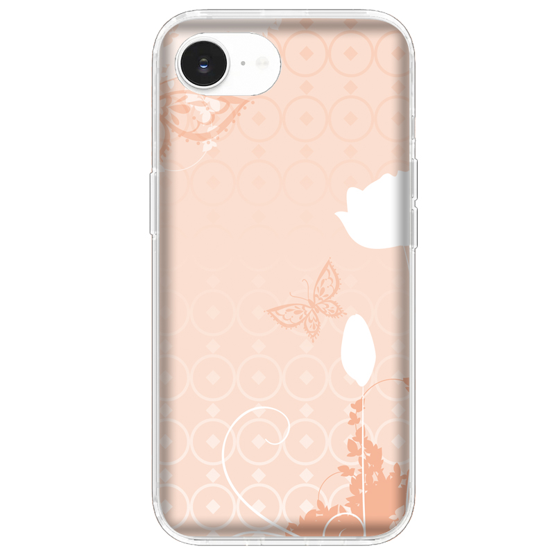 ■Apple iPhone 15 専用スマホケース キュート蝶々エレガントbutterfly パステル調 自然 生き物 可愛い サーモンピンク エレガンス