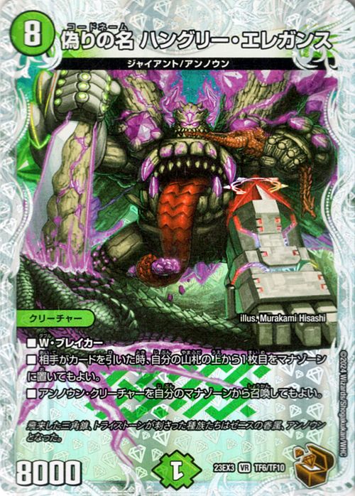 ■デュエルマスターズ 偽りの名 ハングリー・エレガンス(ゼニス銅トレジャー) 邪神と水晶の華 (DM23-EX3) デュエマ 自然文明 クリーチ